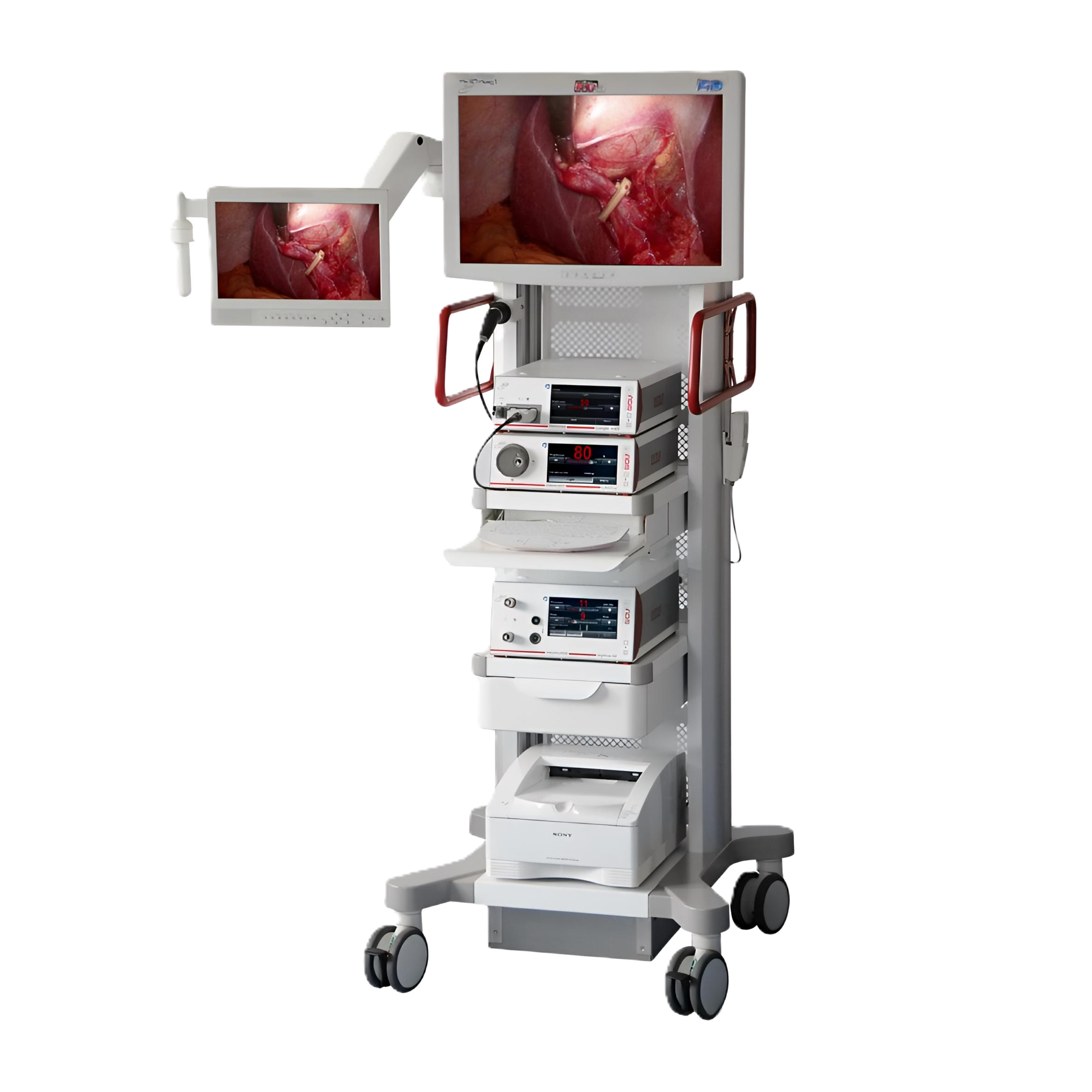 - Функциональность: Стойка мобильна, включает монитор и полный набор компонентов для полной поддержки всех этапов операции — от инсуффляции до аспирации и визуализации.