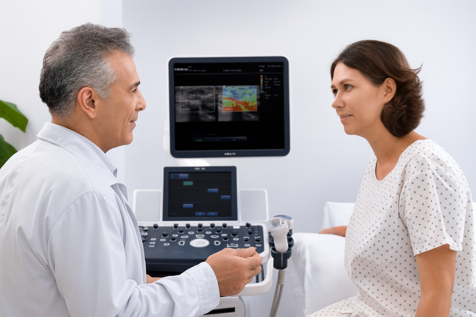 Эластография — технология УЗИ, которая позволяет проанализировать эластичность и плотность тканей. Здоровые ткани обычно упругие и мягкие, а патологические — жесткие.