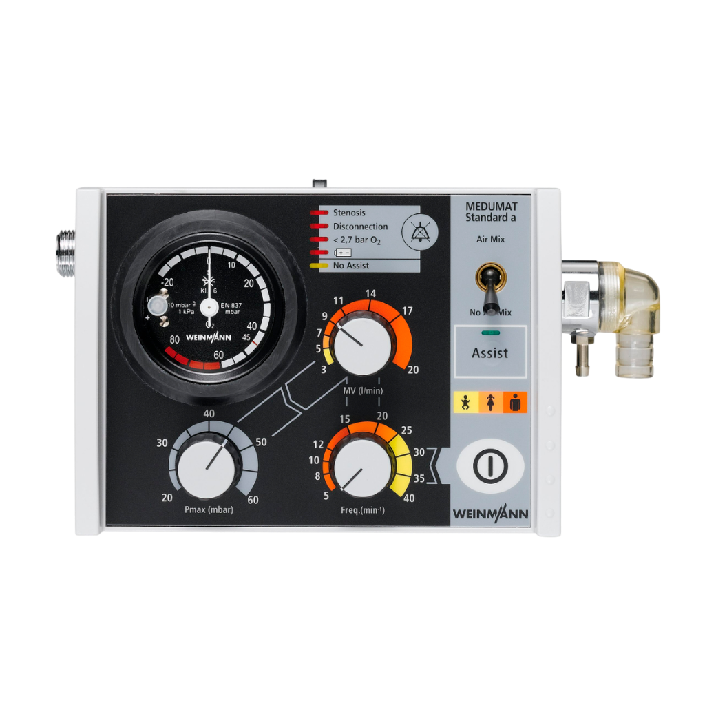 WEINMANN MEDUMAT Standardᵃ — это компактный и надежный аппарат искусственной вентиляции легких, разработанный для экстренного применения в условиях транспортировки пациентов. Он интегрируется с платформами LIFE-BASE и модулями CPAP или кислородной ингаляции, расширяя возможности респираторной поддержки в полевых и клинических условиях.