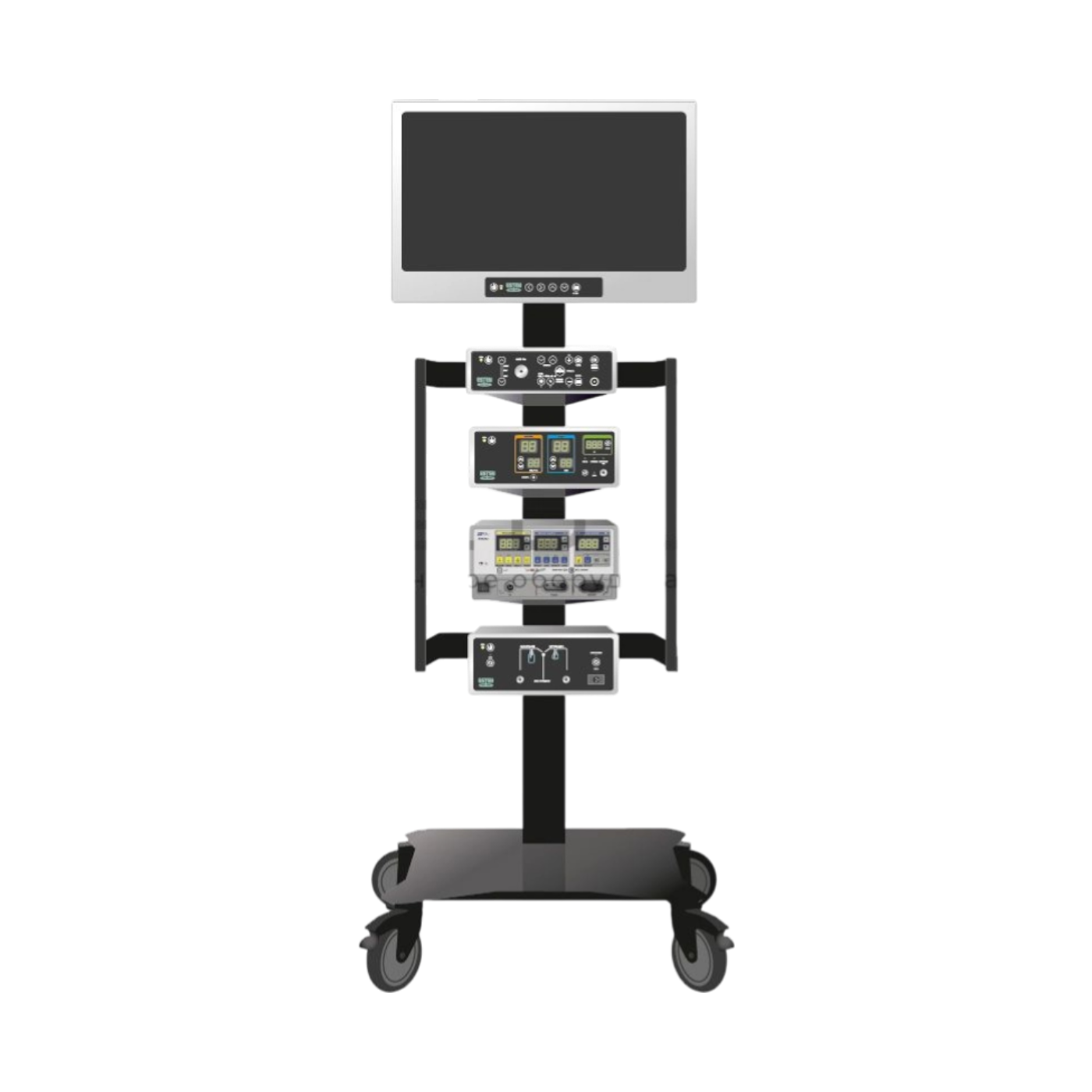 - Передвижная стойка (4 полки, кронштейн под монитор, держатель банок/головки, розеточный блок, металл — алюминий и нерж. сталь)